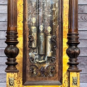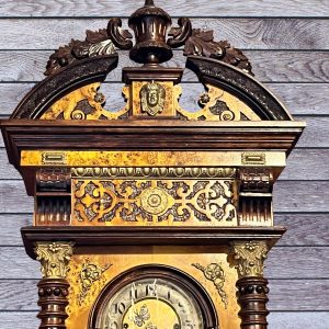 Một chiếc treo tường xuất sắc, vỏ gỗ vân nu kết thợp với các chi tiết đồng tinh tế sắc nét.
