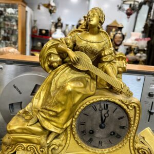 Đồng hồ tượng, xuất xứ Pháp. Sự kết hợp hoàn hảo giữa phần thân đá trắng và tượng đồng đúc cực kỳ đẹp và sắc nét.