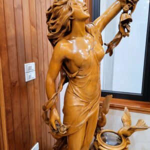 Đồng hồ tượng với phần thân là thiếu nữ và những chú bồ câu, trên tay là chiếc đồng hồ.