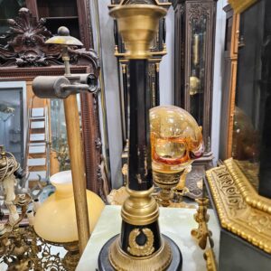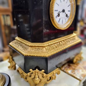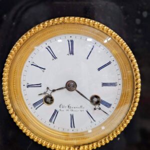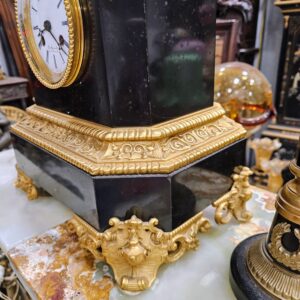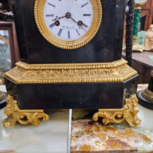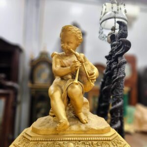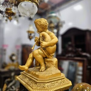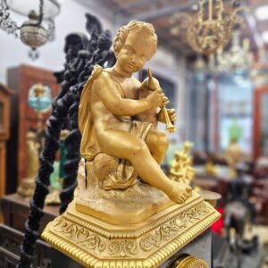 Đồng hồ tượng, xuất xứ Pháp. Sự kết hợp hoàn hảo giữa phần thân đá đen và tượng cu tí bằng đồng lacke vàng cực kỳ đẹp và sắc nét.
