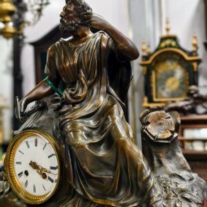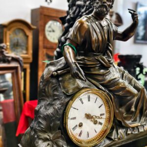 Một chiếc đồng hồ tượng cổ điển với thiết kế tinh xảo. Xuất xứ Pháp, tác phẩm tôn vinh nhà hiền triết người Hy Lạp cổ đại Plato.