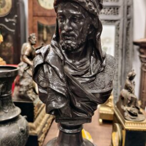 Đồng hồ tượng, xuất xứ Pháp. Một tác phẩm điêu khắc bằng đồng có tên “Buese 1889” của nghệ sĩ Emmanuel Villanis. Nghệ sĩ: Emmanuel Villanis là một nhà điêu khắc người Pháp, nổi tiếng với các tác phẩm điêu khắc theo phong cách Art Nouveau. Chất liệu: Tác phẩm được làm bằng đồng, một chất liệu phổ biến trong điêu khắc, cho phép tạo ra các chi tiết tinh xảo và bền vững. Phong cách: Bức tượng thể hiện phong cách của Villanis, thường tập trung vào hình tượng phụ nữ và các nhân vật mang tính biểu tượng, với những đường nét mềm mại và biểu cảm. Giá trị: Các tác phẩm của Emmanuel Villanis được đánh giá cao và thường xuất hiện trong các bộ sưu tập nghệ thuật và đấu giá.