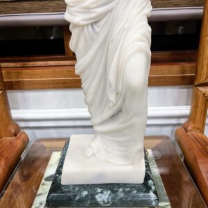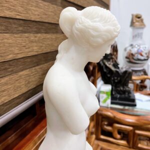 Tượng nữ thần Venus, vị nữ thần tình yêu và sắc đẹp của Hy Lạp. Tượng bằng đá cẩm thạch trắng tinh khôi thể hiện cân đối, tràn đầy sức sống của nữ thần với lớp vải quấn mềm mại rủ xuống từ ngang hông.